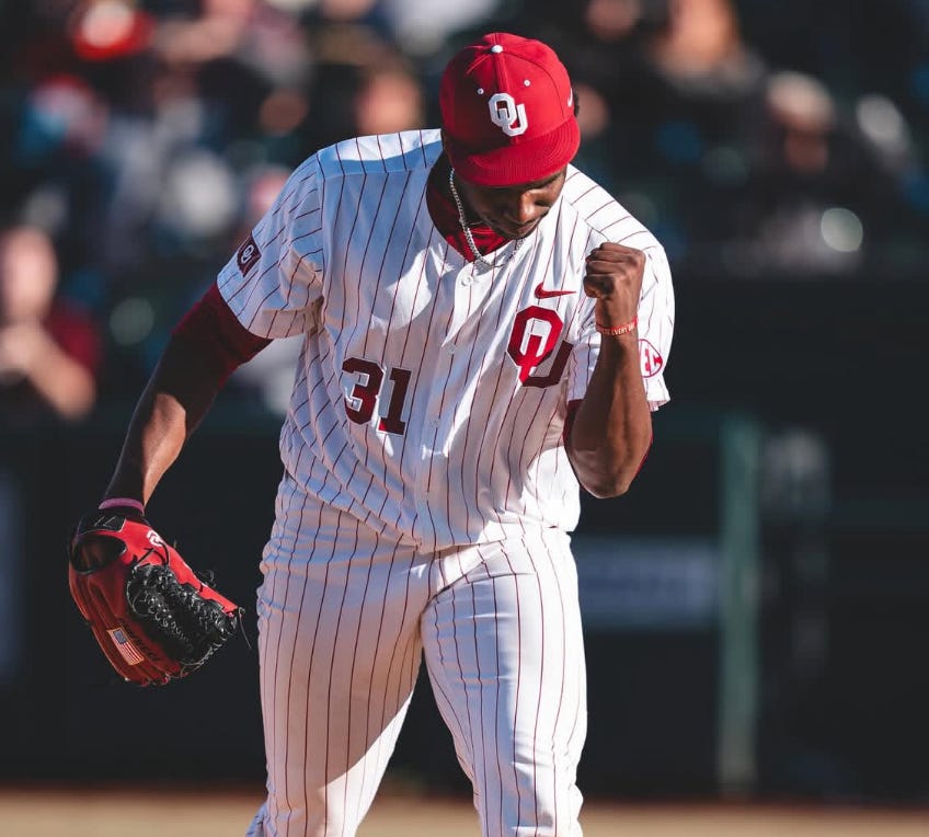 Cam Johnson from Oklahoma is one of my favorite arms to watch in college baseball right now.