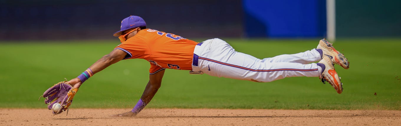 Purify has become one of the catalysts in Clemson’s lineup, hitting .390 early this season with 23 hits, 22 runs, and eight stolen bases, showing exactly the type of dynamic skill set scouts look for in middle-of-the-diamond players.